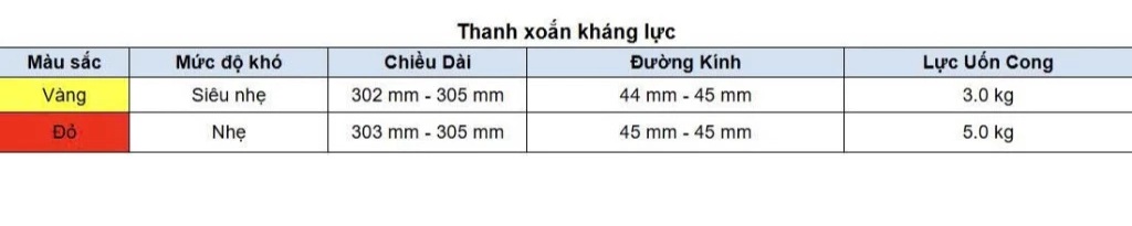 Màu sắc/mức kháng lực: Vàng (Rất nhẹ), Đỏ (Nhẹ)