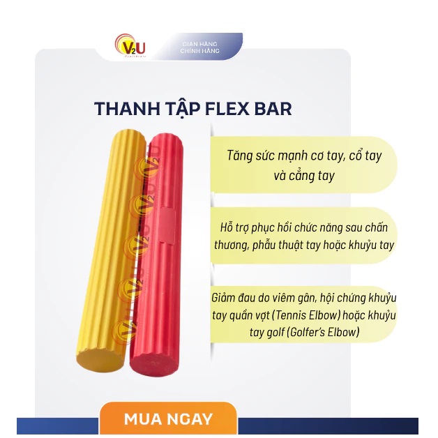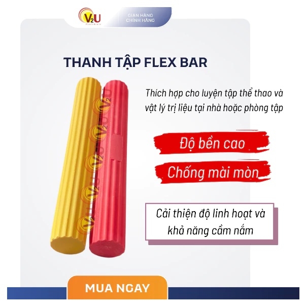 Thanh tập Flex Bar có/không chứa latex, độ bền cao, chống mài mòn, phù hợp cho luyện tập và phục hồi chức năng chi trên. Sản phẩm giúp tăng sức mạnh cơ tay, cải thiện độ linh hoạt và giảm đau ở vùng tay, khuỷu tay, cổ tay.